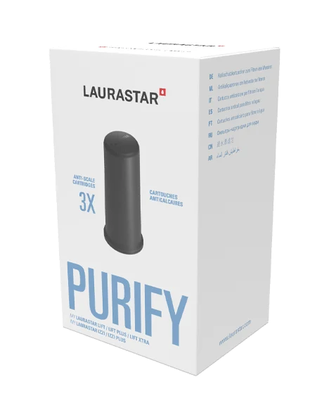 The limescale filter cartridge, specially designed by Laurastar Swiss engineers, allows you to filter tap water before it is used for ironing. By preventing limescale, they ensure a longer life cycle for your iron. They also prevent salt to improve steam quality. Anti-corrosive, they also prevent damage to boiler components. The limescale filter cartridge should be replaced when anti-scale granules turn completely brown.